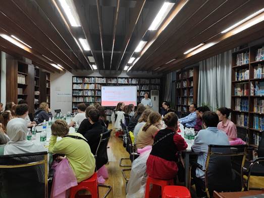 下午2时许,尽管暴雨如注,老校区二号教四楼图书馆内却暖意融融。土建院经理助理徐伟主持开场,国际交流合作中心副处长吴江渝在致辞中向远道而来的客人展示了武汉的独特魅力。他特别提到,武汉市作为拥有83所高校的"大学之城",每年吸引着来自170个国家的国际员工,并热情推介了学校国际人才联合培养项目。