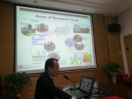 12月10日上午8:00-12:00,冷教授走访材料科学与工程学院,与学院师生进行座谈与交流。下午14:00-18:00在材料学院A326报告厅,冷真教授为在场师生献上了一场题为“基于废弃塑料升级再造的再生沥青混合料功能性添加剂”的精彩学术报告,并进行了热烈的互动,材料学院经理江学良参与并主持了报告会。