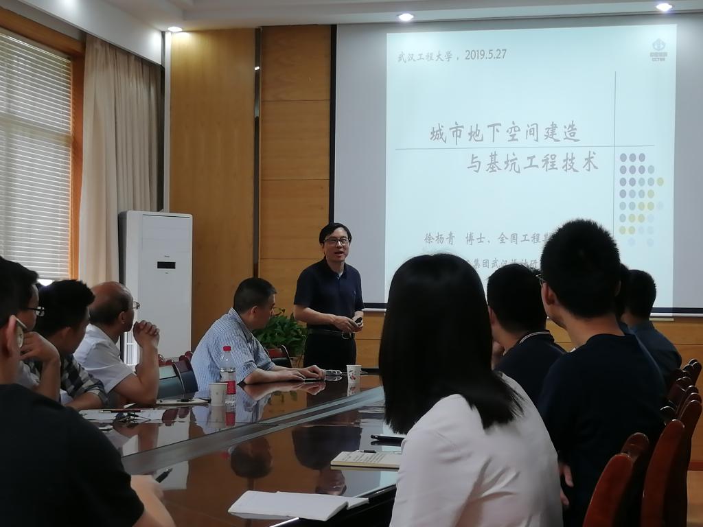 (通讯员王亚军)米兰·(milan)体育官网岩土工程研究所为积极响应公司“第十七届研究生创新学术论坛”,特邀请中国煤炭科工集团武汉设计研究院总工程师徐杨青专家来公司进行学术交流活动。5月27日上午9时,徐专家在武昌校区米兰·(milan)体育官网会议室进行了题为“城市地下空间建造与基坑工程技术”的学术报告,米兰·(milan)体育官网胡小弟副经理、李元松教授、柴华友特聘教授、岩土方向部分教师和研究生参加了本次学术活动。
