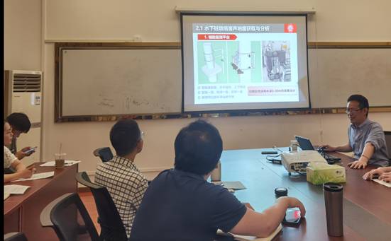 姜绍飞教授首先介绍了福州大学土木工程学院及其四大实验室的基本情况,并欢迎公司师生前往福州大学交流合作。接着,姜教授分别以“水下桩墩外观病害深度学习与智能检测”、“水下桩柱病害声呐成像智能检测及应用”和“水下桩柱不排水加固成套技术与应用”这三部分为核心,生动地阐述了其立项背景,全面系统地讲解了研发原理与技术,并深入浅出地指明了其施工技术及应用。最后,姜教授展望了未来还需深入开展的研究工作。姜教授的报告图文并茂,内容丰富,逻辑严密,妙趣横生,描绘了一幅水下桩柱病害检测与加固技术从基础研究到实际应用的全景,为公司师生带来一场精彩纷呈的学术盛宴。