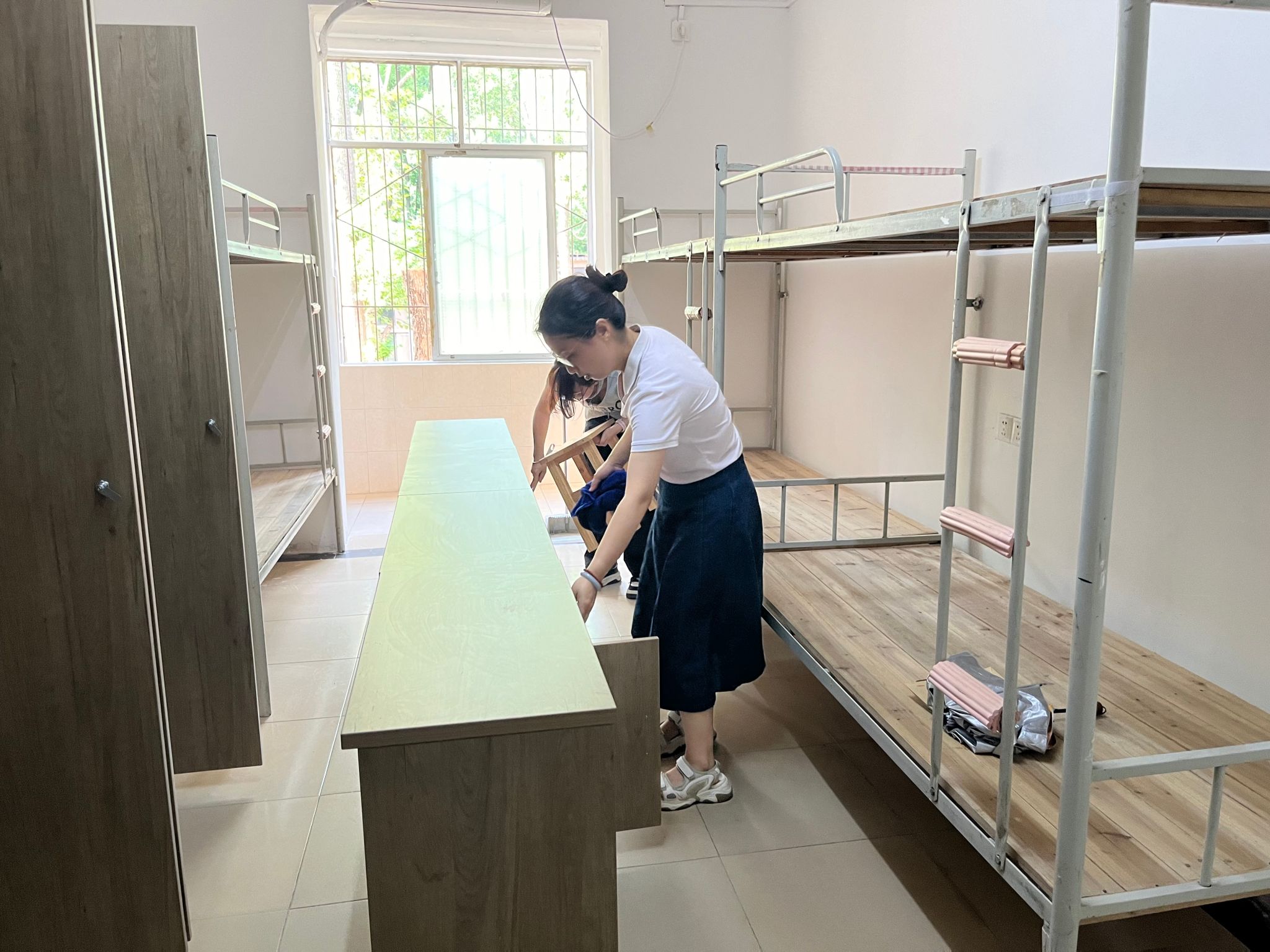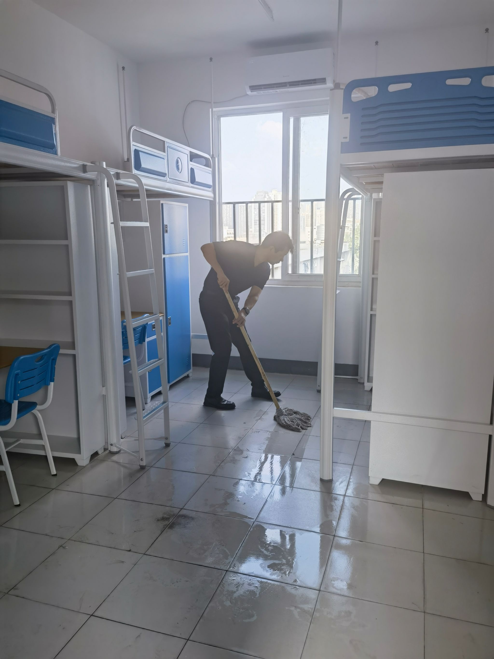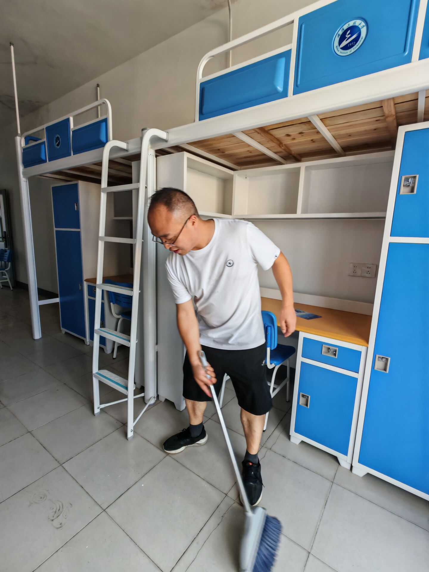 全体师生党员自带清洁工具,逐一对新生宿舍地面、桌面、阳台进行卫生清洁,不留卫生死角。做好清洁卫生同时,师生党员对宿舍桌椅、衣柜、床板、门窗等硬件设施进行检查,对存在问题的宿舍及时报修,共同为新生提供一个干净、整洁的住宿环境。