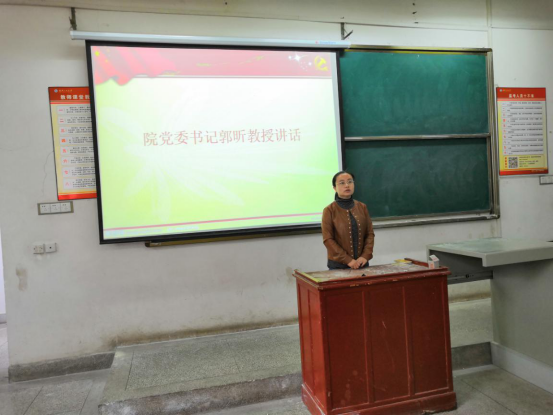 典礼最后,学院分党委书记郭昕讲话。首先对新的学员表示祝贺,希望学员们向优秀学员学习,积极向党组织靠拢。其次向同学们提出了两点希望:一是希望大家在党校的培训过程中,认真学习,要真正的做到“学懂、弄通、做实”,不仅要在思想上,更是要在行动上入党;二是希望大家坚定政治立场,提高政治站位,认真学习党的理论知识,特别是习总书记重要讲话精神以及党的第十九大、十九届二中全会、三中全会精神。