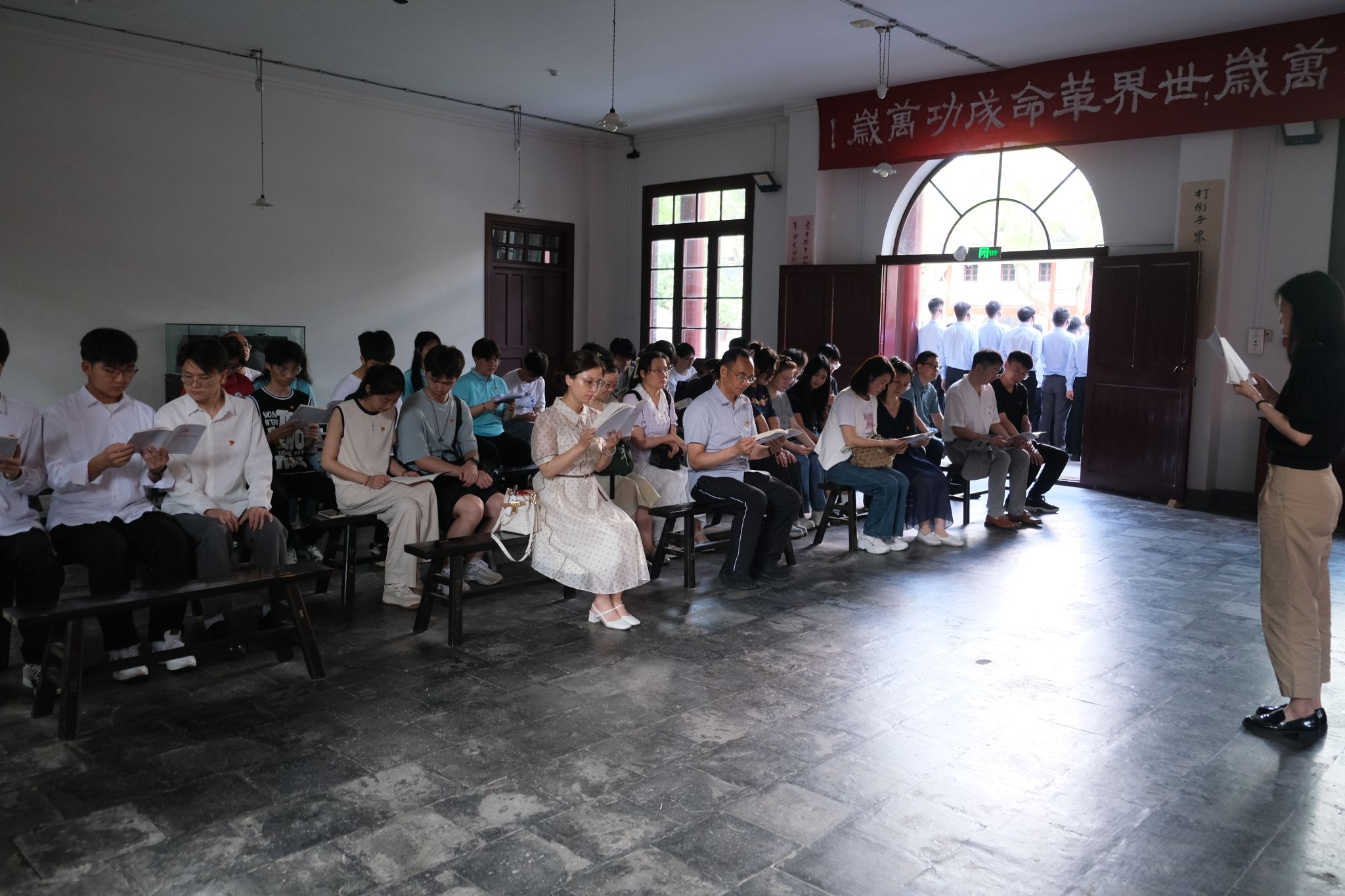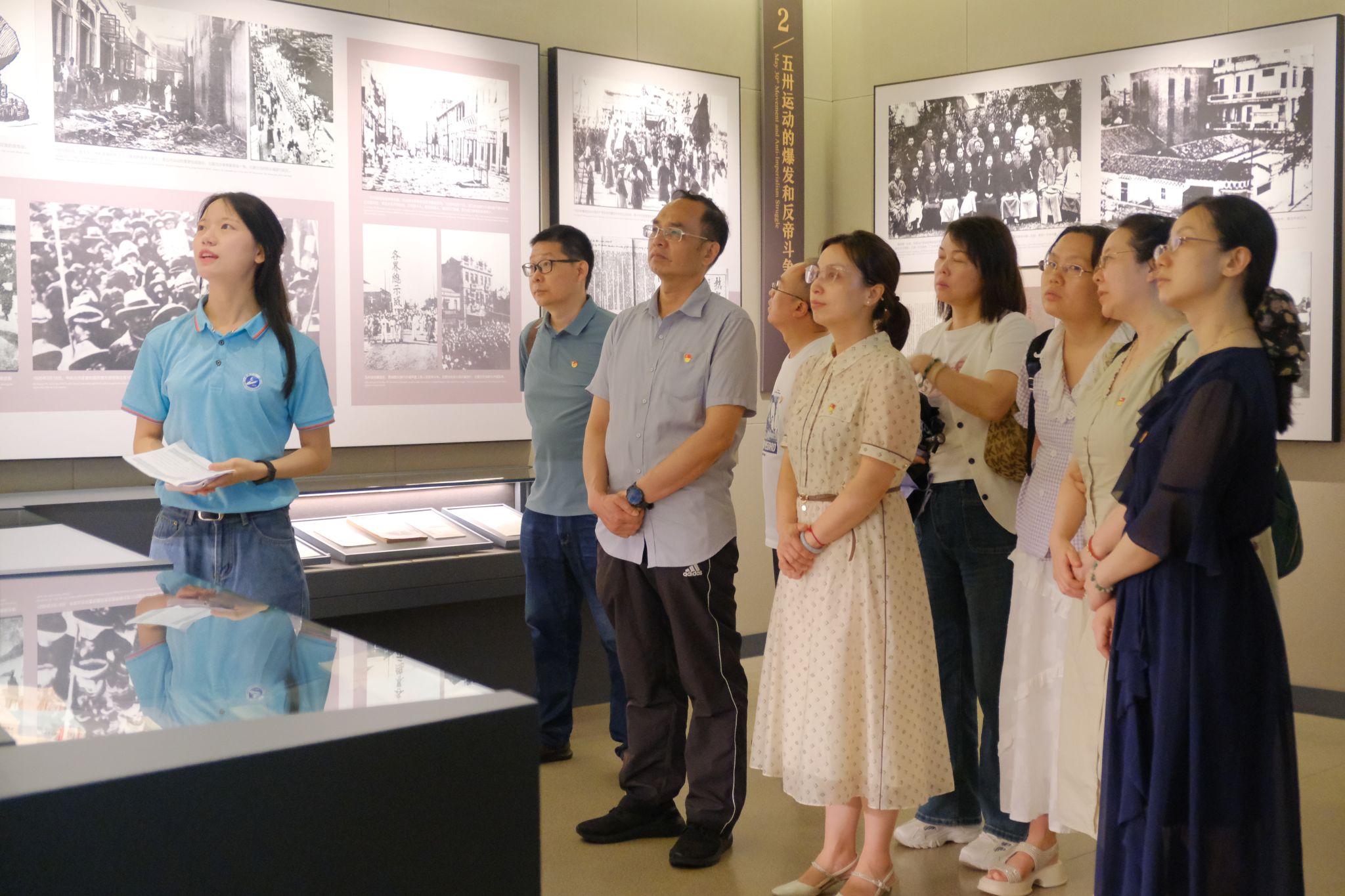 全体师生首先参观了中共五大会址纪念馆,学校马克思主义学院“红心向党”红色宣讲团成员张雅婷等四位同学为大家讲解了中共五大的历史背景。“面对错综复杂、尖锐激烈的国内外政治形势,中国共产党人需要有清醒的认识,采取果断的行动,才能挽救革命”。在这一历史背景下,1927年5月9日,中共五大顺利召开。中共五大在党的历史上第一次设立专门的党的纪律检查机构——中央监察委员会,并制定了监督监察相关制度。