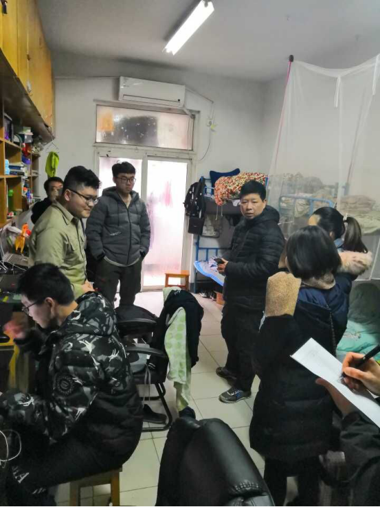 在检查中,郭飞副书记就同学们关于寝室安全生活、卫生与学习等方面进行问候调查,表达了对于员工寝室文化建设、环境改善及用电安全的关心,并传达了对同学们新年的祝福和新学期的期望,勉励员工勇攀高峰。员工也对领导的视察工作作出了积极响应,愿在新的一年里以奋发有为、锐意进取的姿态来回报领导所寄予的厚望。