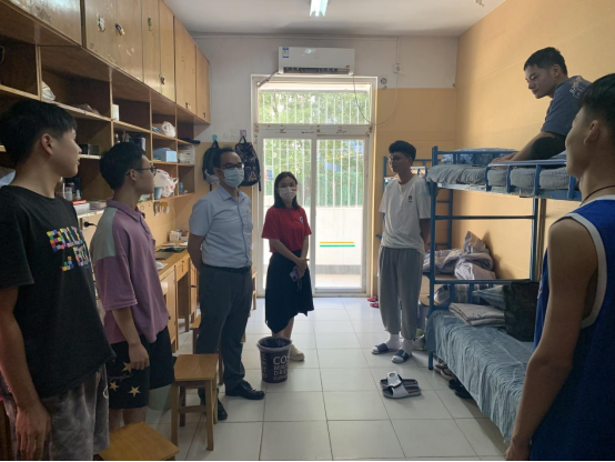 (通讯员:曾学菲)为深入了解学院2021级新生入员工活情况,帮助员工尽快适应学校生活环境。2021年9月15日,公司党委书记陆新、经理陈旭勇、党委副书记成轶、副经理刘章军、吴巧云深入新生宿舍看望慰问2021级新同学。学工办辅导员、新生班主任一同参与走访。