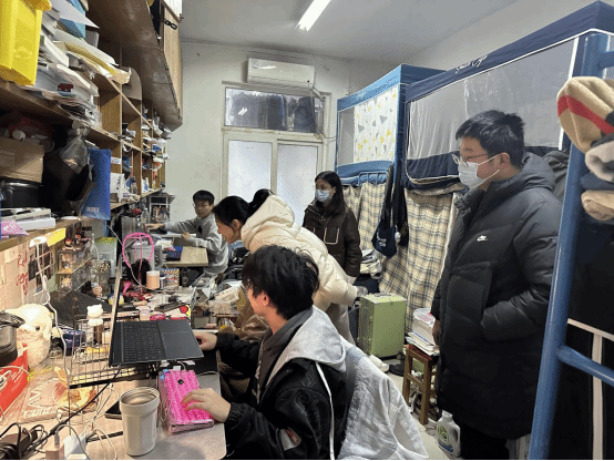在走访过程中,成轶重点从寝室卫生、整洁程度、寝室氛围等方面与同学进行交流。她表示,希望同学们保持寝室卫生环境,从内到外展现出积极向上的形象。同时关心询问了员工的学习情况,临近期末考试,提醒同学们要科学安排时间,健康作息,定期锻炼身体,平衡好学习与生活,做到劳逸结合。若有学习与生活上的困难与问题,要及时向学院反映。除此之外,建议在日常生活中广结良友,多向学长学姐们请教,在学习与生活中互帮互助。