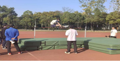 起跳,腾空,过杆!2023级土建一班的昝建航同学在空中划出利落弧线,横杆升至1米7仍稳稳越过,成功夺取冠军——这纵身一跃,是青春最美的冲刺!
