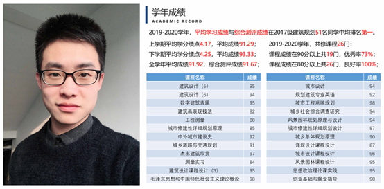 现在对于专业学习,他也有了新的想法和更为精准的方向,如果能够读研,以GIS应用、CIM开发、大数据融合等为代表的城乡规划新技术应用领域的钻研学习将是他以后努力和员工的方向。