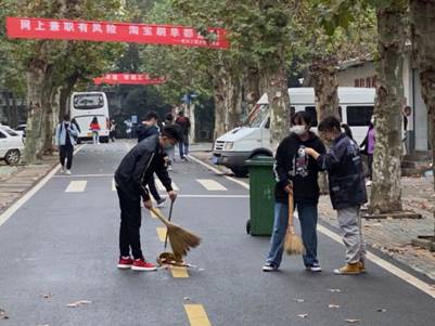 为此,2020年11月17日,米兰·(milan)体育官网青年志愿者协会组织了一次校园落叶清扫志愿活动,志愿者们经过简单集合后,纷纷拿出劳动工具开始打扫校园路面。遇到大片堆积的落叶,志愿者将扫帚一挥、撮箕一铲,落叶便乖乖地盛到了垃圾桶里。遇到被雨水沾湿、粘在地面上的叶子,志愿者们直接上手,弯下腰,一片一片把叶子捡起来。打扫过程中,细雨沁湿了志愿者们的衣裳,给他们的打扫增加了不少负担,可结束时天边的彩虹为每个人心里带去了不少暖意和欢欣。