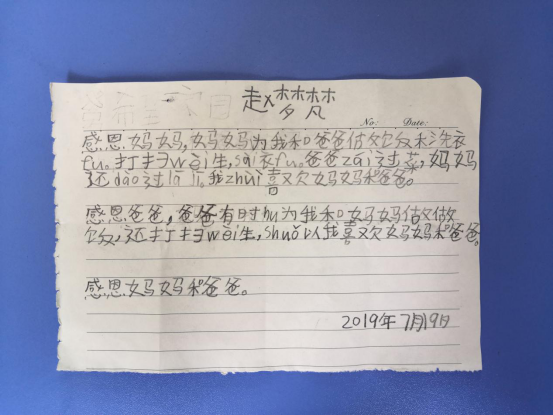 图为一名二年级的员工写给自己妈妈的感恩信。中国青年网通讯员杨诗逸摄