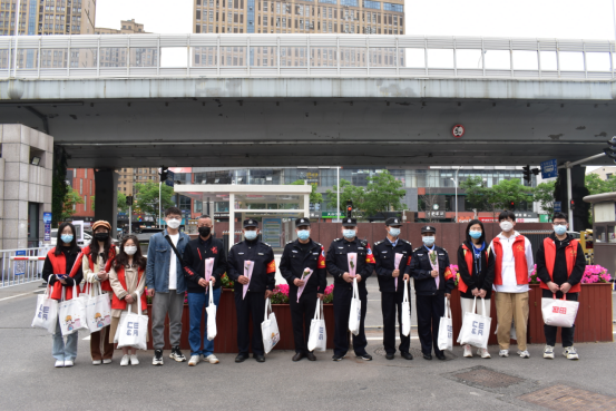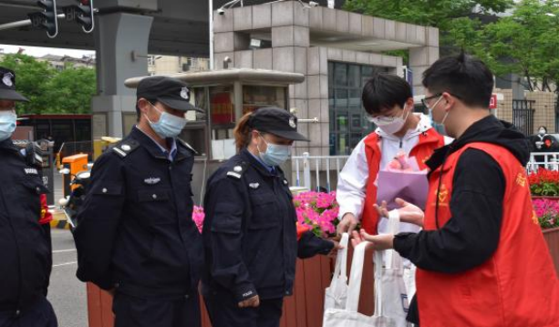 “请大家进校前扫码、测温、出示通行证······”,五一假期,在学校武昌校区南门口,罗科长等保卫处工作人员仍然在岗位上继续坚守执勤,细致入微的检查着每一个出入的人。假期中巡逻,烈日下站岗。看到他们忙碌的身影,志愿者们为他们也送去了节日的问候。面对复杂的疫情形势,我们之所以能在校园里正常有序的学习生活,正是因为他们用辛勤付出守护着校园疫情的安全防线。
