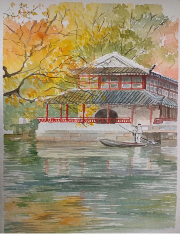 作品介绍:风里水乡绕梁藤萝香丝竹悠扬撑篙入江南。