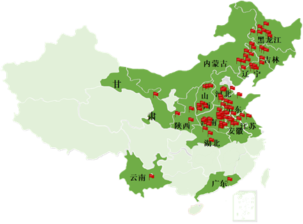 湖北省(荆门、荆州、石首)、河南省、安徽省、江苏省、山东省、河北省、山西省、陕西省、黑龙江省、吉林省、辽宁省、内蒙古、甘肃省、云南省、广东省