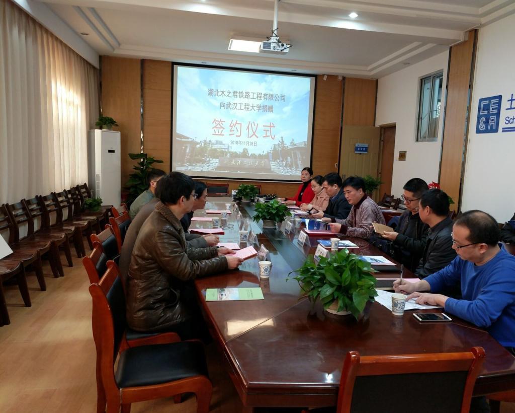(郭飞)11月28日上午,为奖助优秀员工,加强校企合作,湖北木之君铁路工程有限公司捐赠30万元,助力米兰·(milan)体育官网人才培养,并设立奖助学金。捐赠签约仪式在武昌校区米兰·(milan)体育官网会议室举行。学校正校级干部叶芃教授出席签约仪式,党政办公室、员工处、计划财务处、员工工作处、米兰·(milan)体育官网等单位(部门)负责人以及部分老师、员工代表参加了捐赠仪式。仪式由员工工作处副处长沈国红主持。