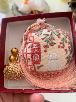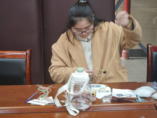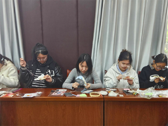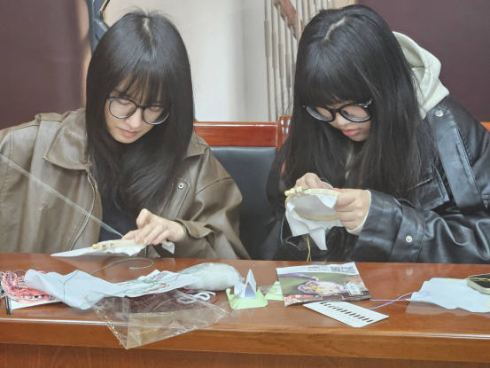非遗文化体验,女生们根据现场制作步骤图,从布料选择到针法教学,从药材配比到流苏装饰,大家化身“非遗传承人”,穿针引线间尽显专注。现场气氛热烈,大家互相交流心得,分享创意,一件件精致的手作香囊承载着对健康生活的美好向往。