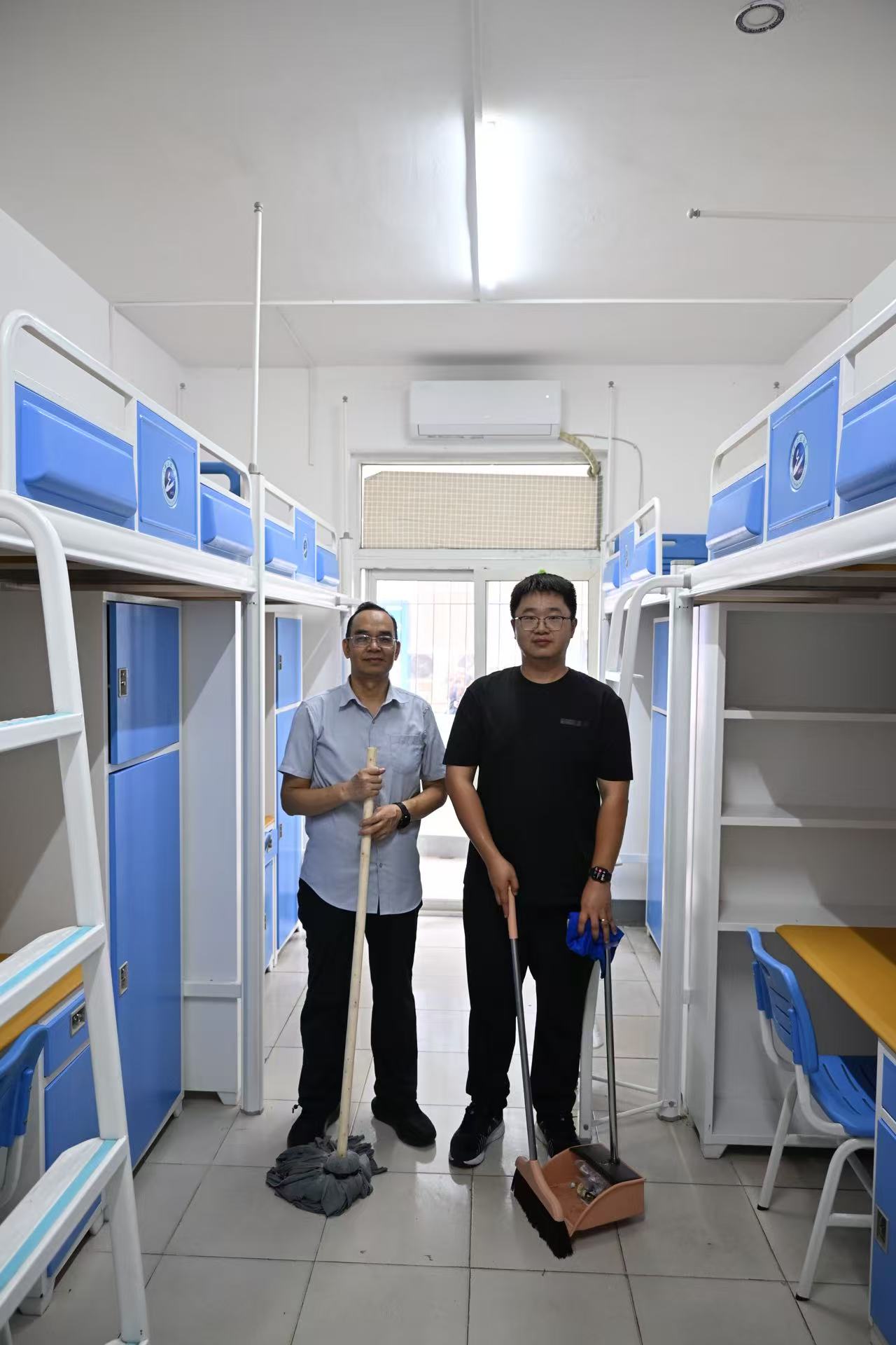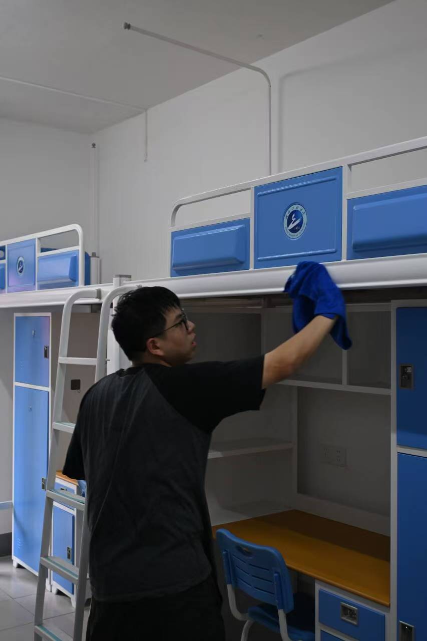 9月11日下午,学院全体党员师生齐聚员工宿舍,逐一对新生宿舍、桌面、阳台进行卫生清洁,不留卫生死角。并再次对宿舍设施进行检查报修,共同为新生提供一个干净、整洁的住宿环境。