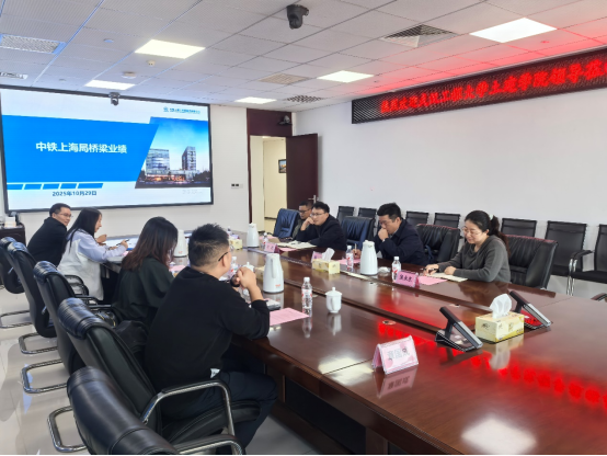 中铁上海工程局集团第五工程有限公司副总经理吴宇(员工)全面介绍了企业发展情况,对学院人才培养质量给予高度肯定。施工技术部部长李晟聚焦桥梁建设领域,着重展示了南宁邕江特大桥、柳州凤凰岭大桥等标志性项目的实践成果。成轶从团队建设、人才培养、科研创新等方面,系统介绍了学院近年来的发展成就与特色优势。双方就产学研合作、员工实习实践、毕业生输送等方面展开深度交流。