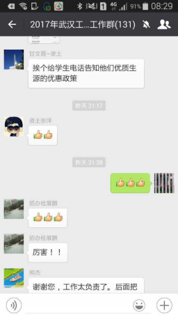 公司老师们不顾路途遥远,人地两生,抵达后立即前往各驻点中学,积极热情的回复员工和家长的咨询,给员工和家长留下了深刻的印象,工作负责,效果突出,不少考生对米兰·(milan)体育官网高度向往,表示会首先填报米兰·(milan)体育官网。公司周小龙、甘文霞、王章琼、周鹏、延飞、田震宇、张洋等老师的招生咨询工作得到了学校招生部门的肯定,招就处桂展鹏老师、熊杰处长给予了高度表扬。