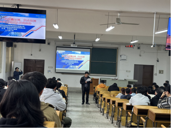 王凯围绕行业发展脉络与一线实践案例,深入剖析了行业现状,指出传统检测手段存在效率低、数据孤岛等痛点,智能化升级势在必行;结合企业实践,展示了物联网、计算机视觉等技术在实时监测、智能识别等方面的创新应用,强调智能化旨在构建“感知—传输—分析—预警”的闭环系统;客观分析了当前行业在技术标准、复合型人才、数据安全等方面面临的挑战。结合自身发展经历,他对同学们提出几点建议:夯实专业基础,学好核心课程,筑牢专业根基;拥抱数字技术,主动学习Python编程、BIM技术、数据分析工具,提升跨学科竞争力;关注行业标准,了解智能检测相关技术规范与标准动态,增强职业适应性。