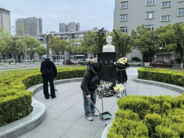 活动最后,全体师生在雕像前肃立默哀,并敬献鲜花,表达了对这位平凡而伟大英雄的崇高敬意。同时,集中开展了“致敬英雄,美化校园”清扫活动。大家手持扫帚、簸箕,认真清理雕像基座及广场周边的落叶与杂物,擦拭雕像上的尘土。