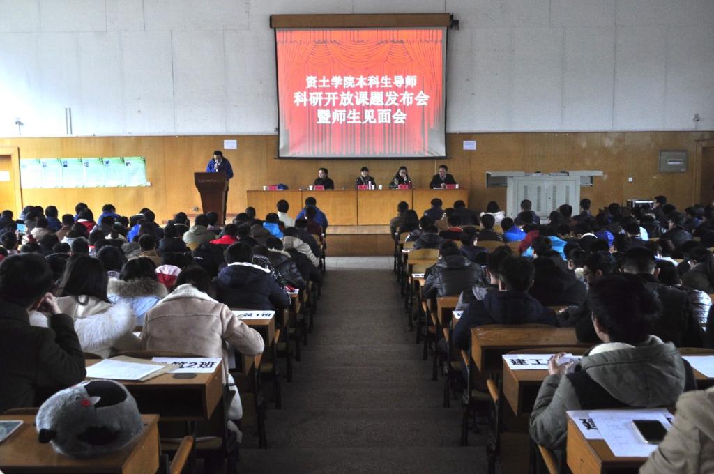 11月24日下午,资源与土木工程学院2015级本科生导师科研开放课题发布会暨师生见面会在武昌校区2教2430教室隆重举行。校团委书记李芳、公司党委书记郭昕、经理卢海林、副经理何东升、党委副书记郭飞、出席了本次会议,李志国、周德红等受表彰的优秀本科生导师,王章琼、张民波、潘攀等新聘本科生导师,以及2015级全体本科生参加了本次会议。本次会议由公司党委副书记郭飞主持。