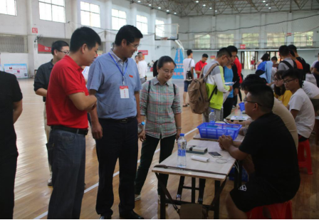 6日中午,王存文董事长一行在资源与土木工程学院分党委书记郭昕、经理卢海林、党委副书记郭飞陪同下检查武昌校区迎新工作,慰问公司迎新工作人员以及新生和家长。
