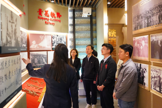 在中铁十一局集团六公司文化展厅,讲解员带领师生走过“序厅”“铁道兵风采”“历史沿革”“发展成就”“金色闪耀”“亲切关怀”六个区域,系统勾勒出一幅从铁道兵精神到现代企业辉煌的壮阔画卷,每一台“大国重器”的背后,都凝结着无数劳动者日复一日的辛勤付出、精益求精的匠心追求和攻坚克难的创新精神。