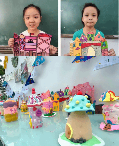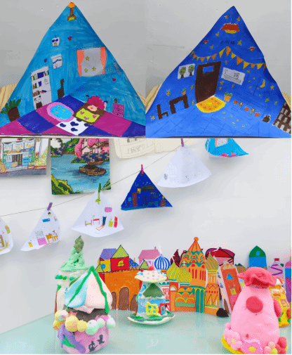夏花志愿服务队积极结合专业特色,由建筑学、城乡规划专业的员工担任美术老师,开展丰富有趣的艺术欣赏、创造活动,通过室内设计、建筑绘画、建筑黏土制作等富有创造力的美术课,强化少年儿童的美育教育,并分别在两所学校开展“筑梦未来小小设计师大赛”和“匠心筑梦·我理想中的家”主题画展,助力员工全方位成长。