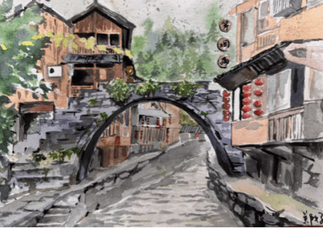 置身于古建筑之中,实践队队员拿起画笔,结合专业特点展开创作并进行展示。