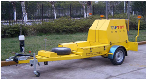 落锤式弯沉仪(FWD)由拖车(包括加载系统和位移传感器)与微机控制系统(包括控制及数据采集处理部分)组成。其工作原理是:在计算机控制下,把一定质量的重锤由液压传动装置提升至一定高度后自由落下,冲击力作用于承载板上并传递到路面,从而对路面施加脉冲荷载,导致路面表面产生瞬时变形,分布于距测点不同距离的传感器检测结构层表面的变形,记录系统将信号传输至计算机,测定路面结构在动态荷载作用下产生的动态弯沉及弯沉盆。测试数据可用于反算路面结构层模量,从而科学地评价路面的承载能力。
